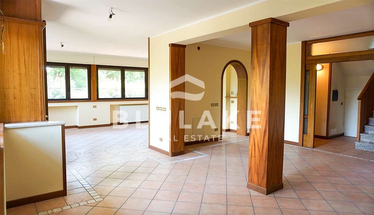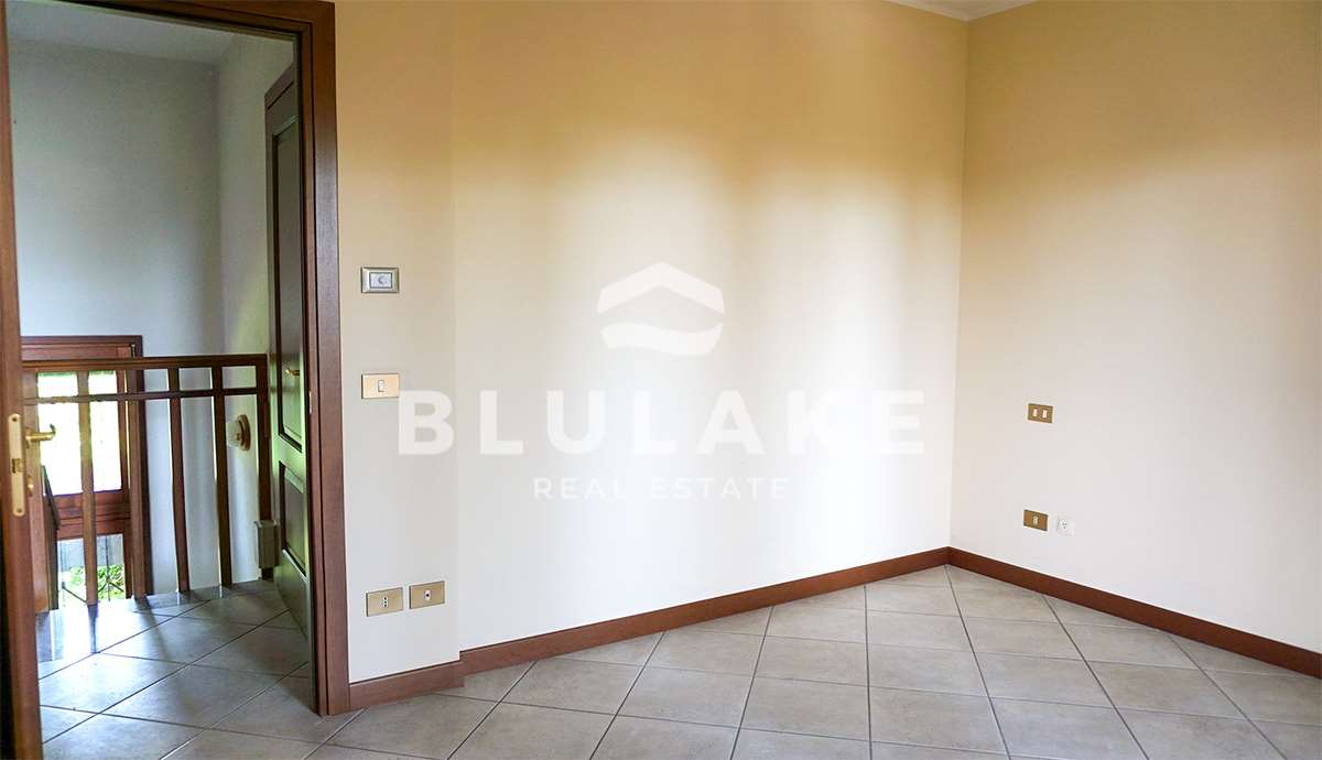 Nell’esclusiva zona residenziale di San Cassiano, a due passi dal lungolago pedonale, proponiamo in vendita porzione di villa bifamiliare indipendente tri-esposta con 300 mq di giardino esclusivo con vegetazione che abbraccia la casa. La proprietà è inserita in un contesto ben curato di 14 unità indipendenti con 2 piscine, campo da tennis e spazi verdi comuni con splendida vista lago. La villa è disposta su 2 livelli fuori terra, libera su 3 lati, in condivisione solo l’ingresso carrabile. Al piano terra si trova l’ingresso, zona living con salone doppio bi-esposto, completamente finestrato su 2 lati, cucina abitabile con accesso al giardino e area piastrellata in porfido. Sempre al piano terra si trova il primo bagno finestrato con doccia. Dalla sala con camino, si accede al primo piano attraverso una comoda scala, dove troviamo 3 camere (2 matrimoniali, 1 singola) tutte con accesso ad un’ampia zona loggiata; sullo stesso piano troviamo 2 bagni, uno con doccia e l’altro con vasca da bagno entrambi finestrati più un ripostiglio. La proprietà gode inoltre di un garage doppio e di locale caldaia con lavanderia/bagno nel piano interrato oltre ai posti auto condominiali.